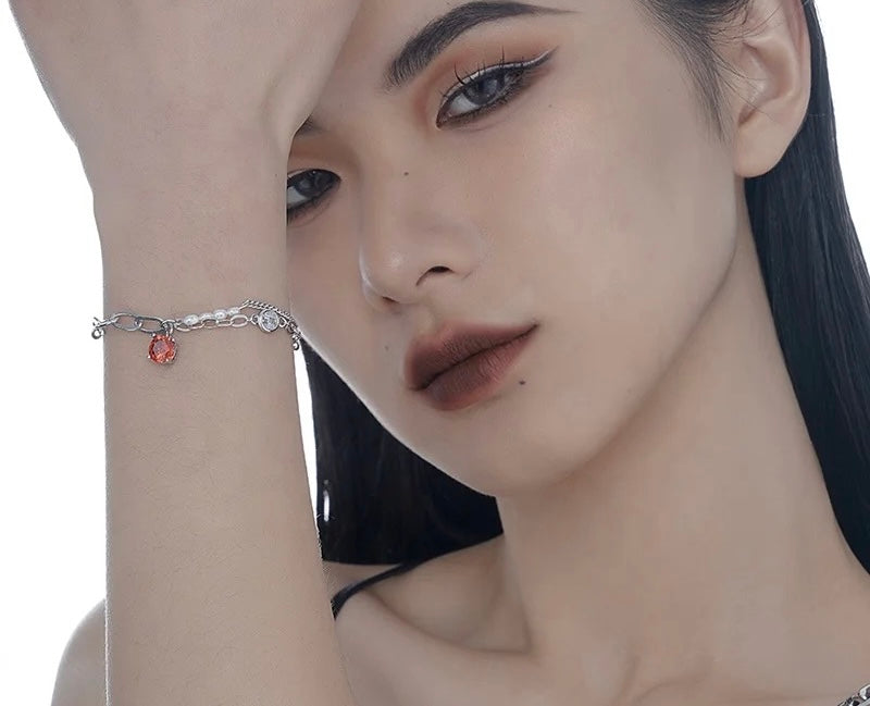 Materials: pearls, clear crystals, Ruby crystal, sterling silver S925, rhodium plated *.