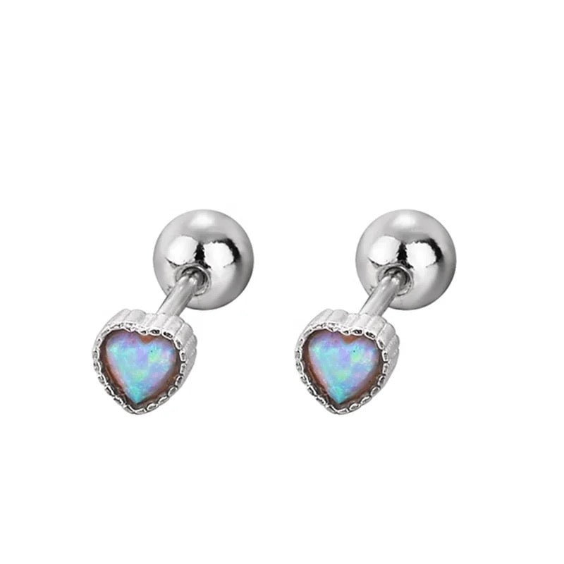Heart shaped silver earrings with opal.