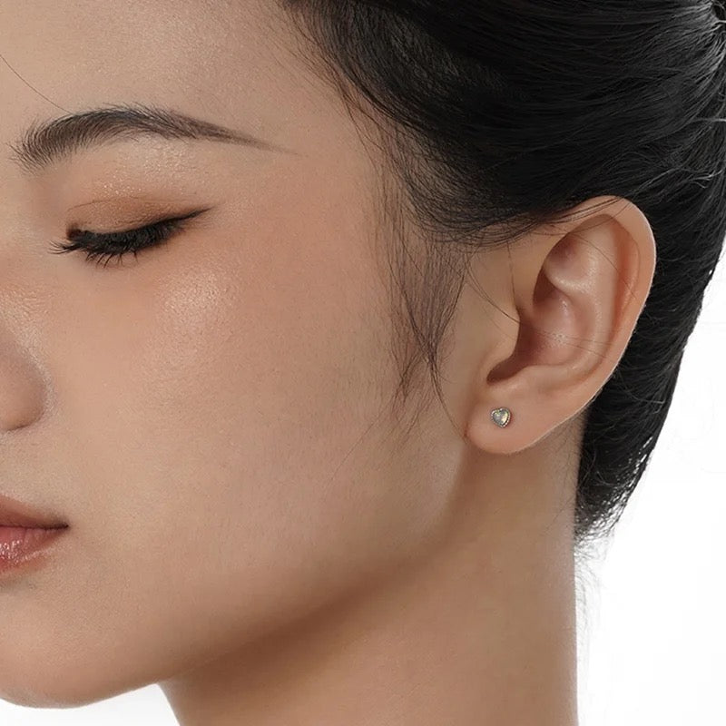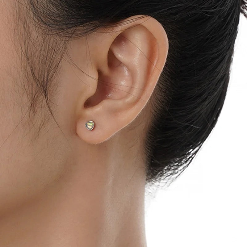 Tiny silver opal earrings