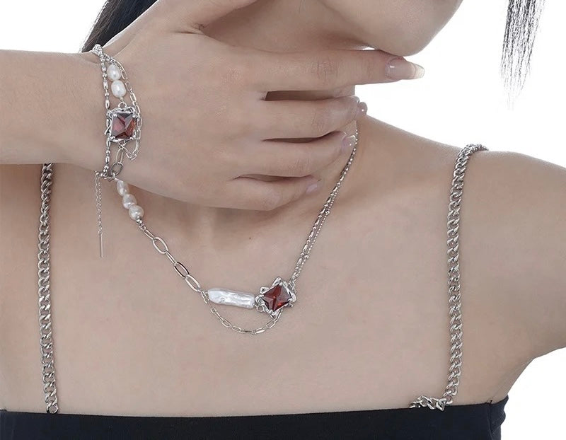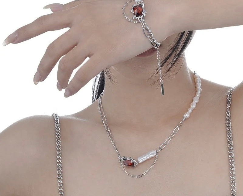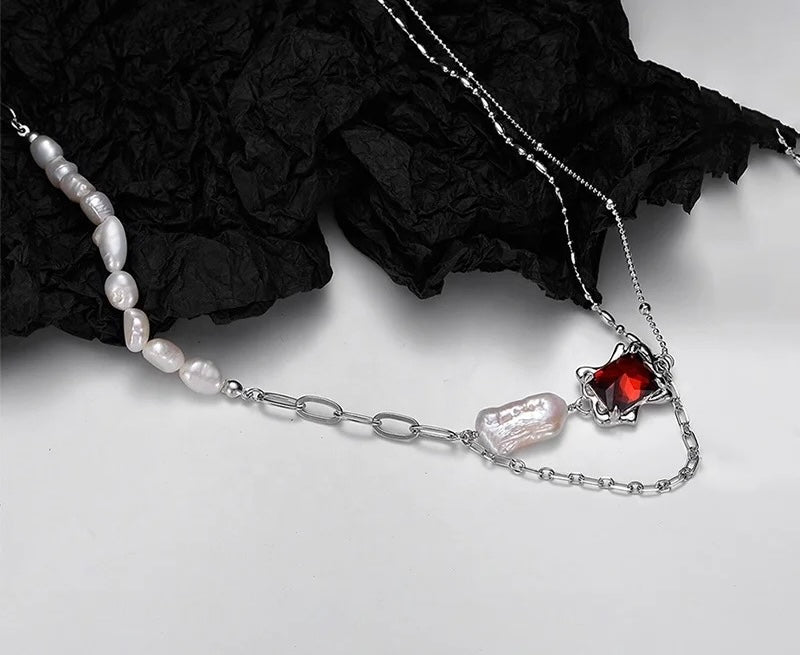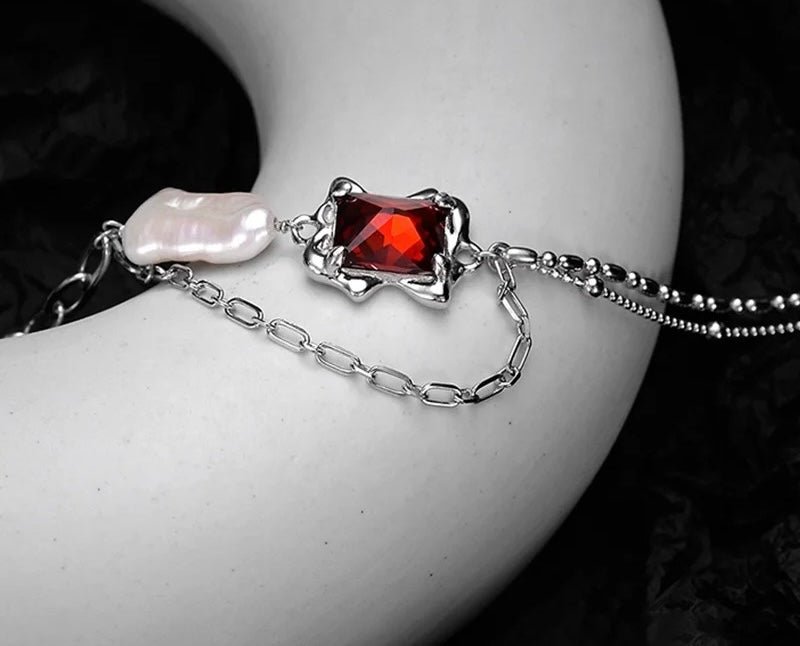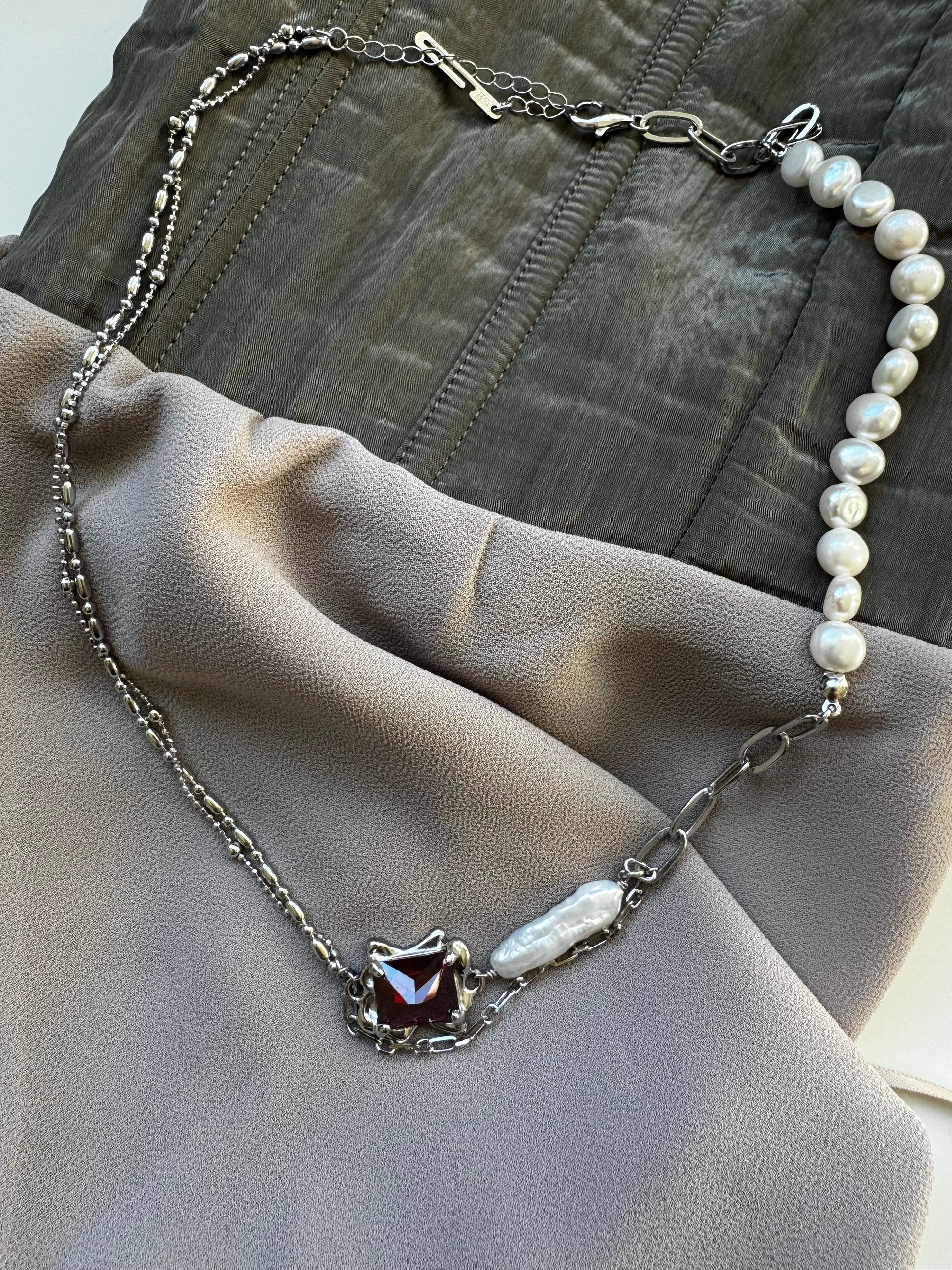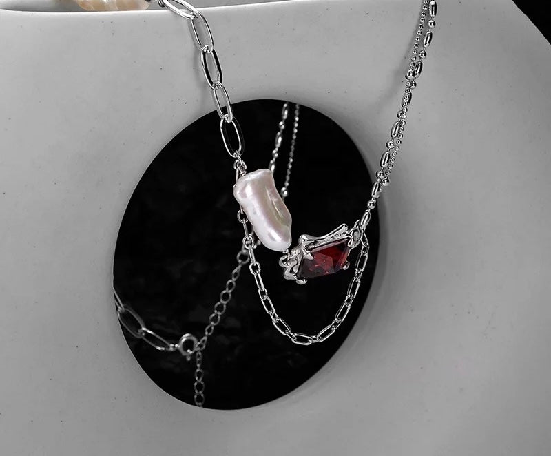 Materials: pearl, ruby crystal, sterling silver S925, rhodium plated *.