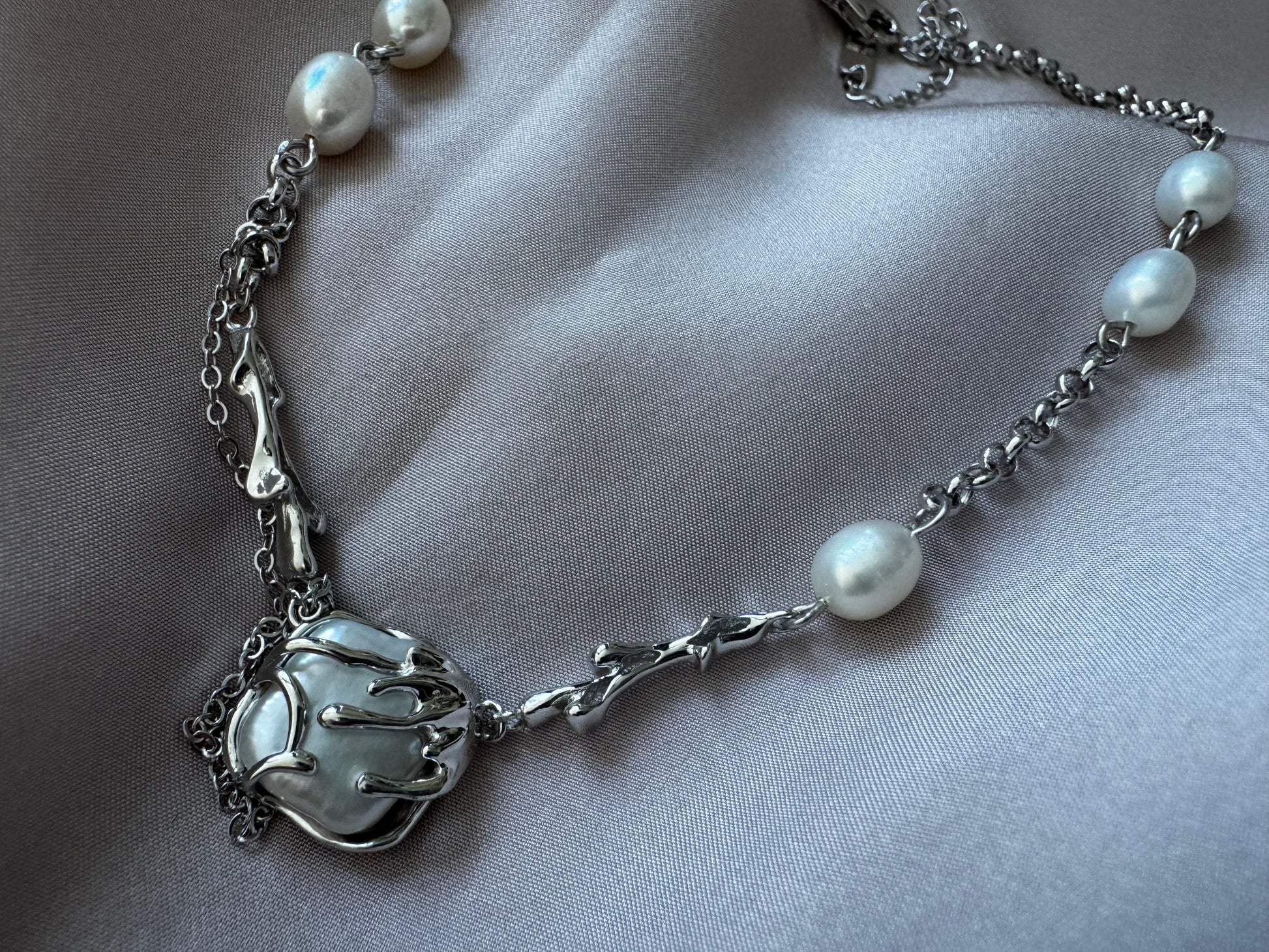 Materials: square baroque pearl, natural freshwater pearls, sterling silver S925, rhodium plated *.