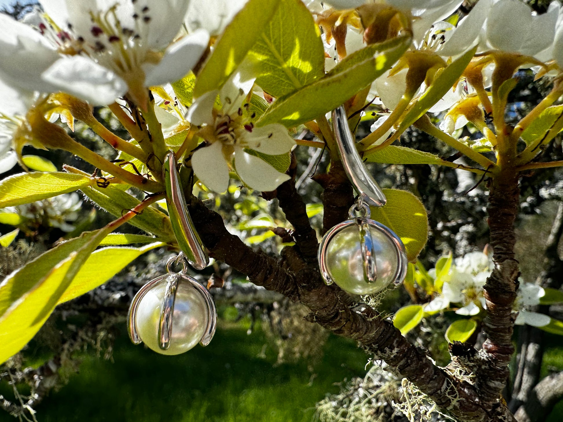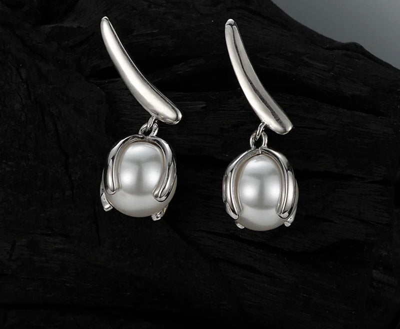 Silver pearl earrings