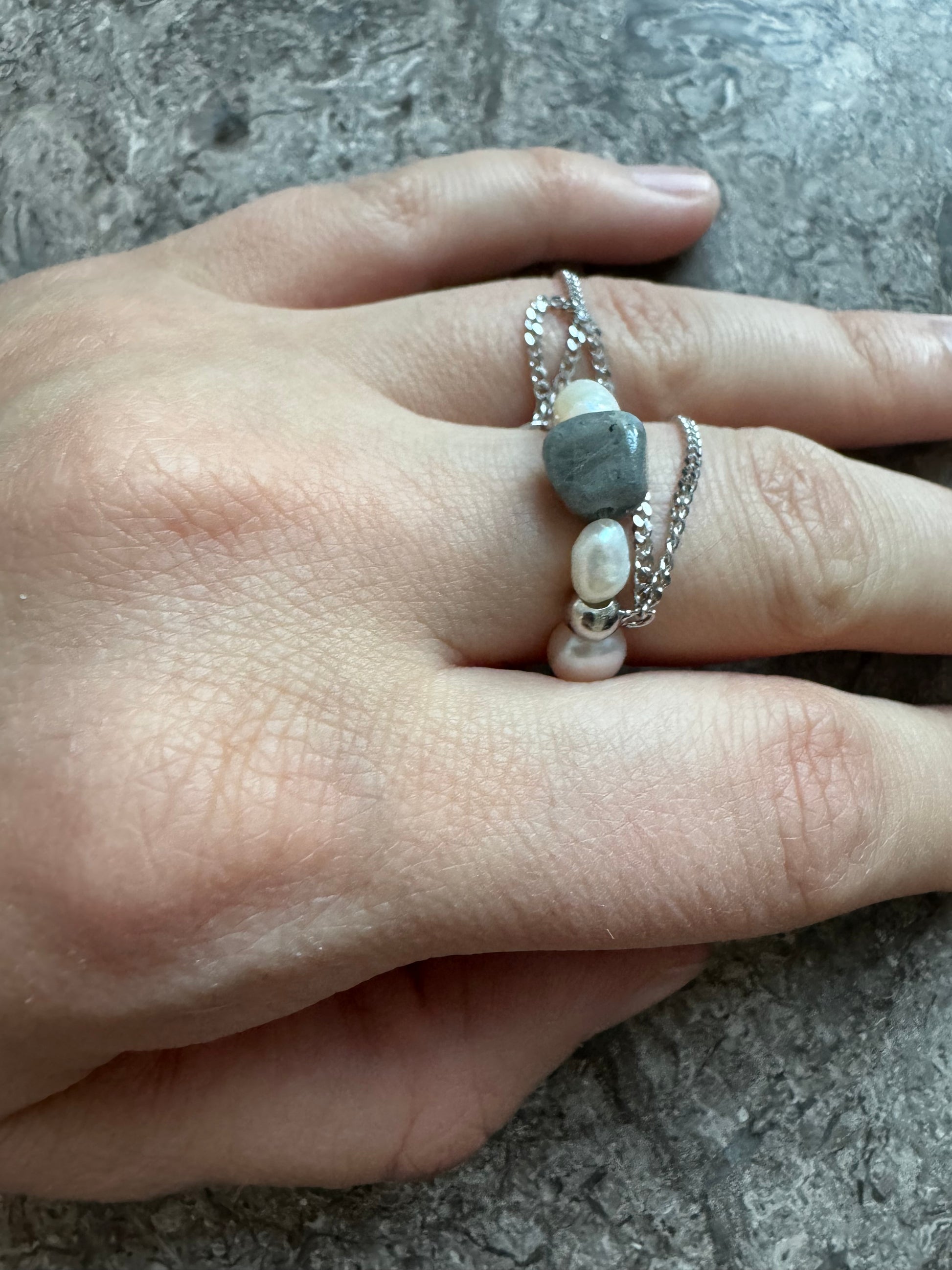 Materials: amazonite*, pearls, sterling silver S925, rhodium plated **.