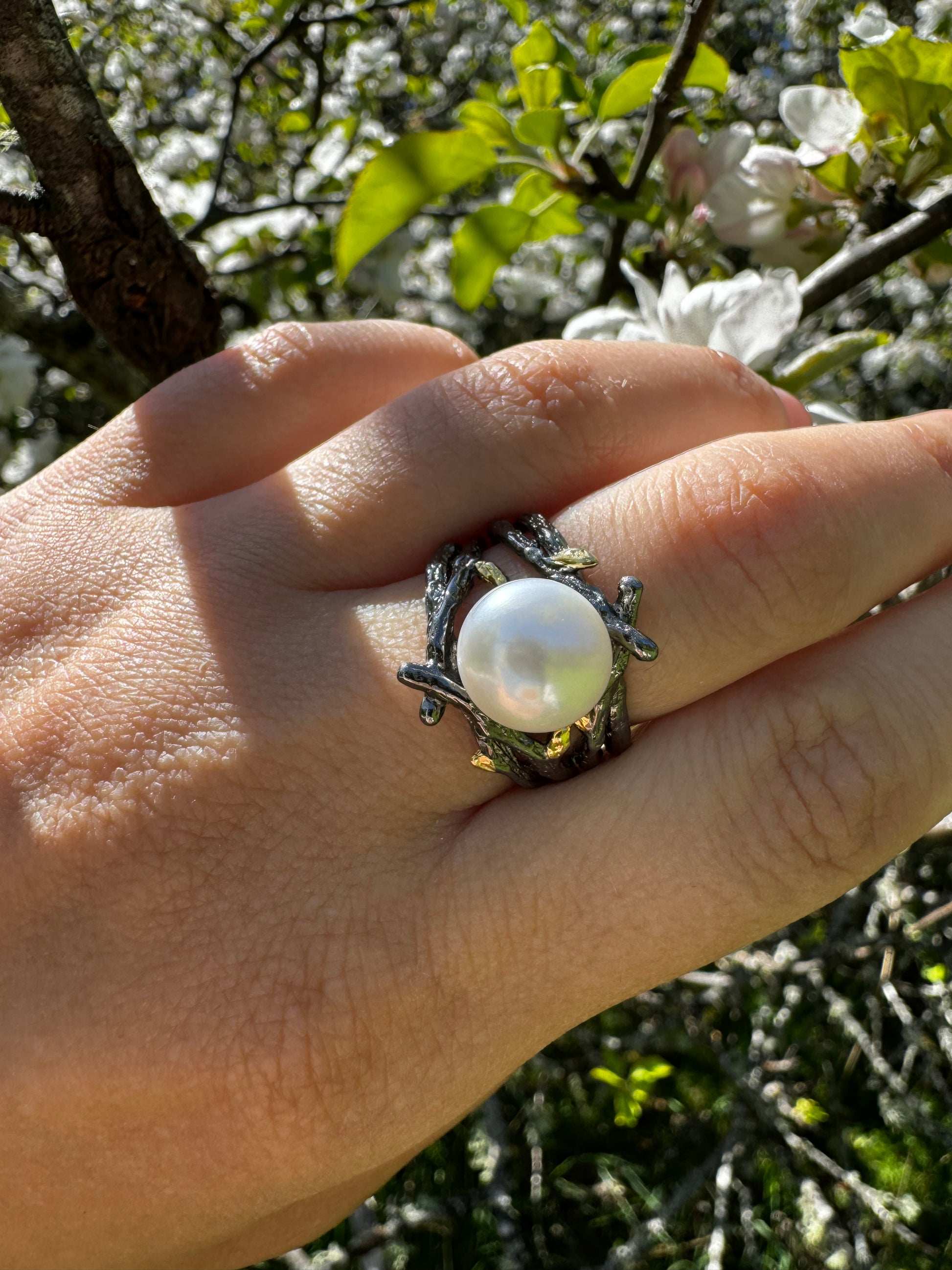 Sterling silver ring with pearl